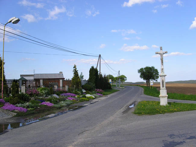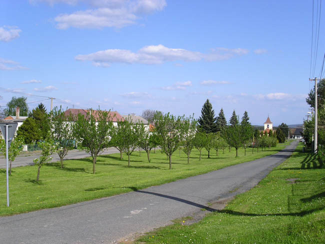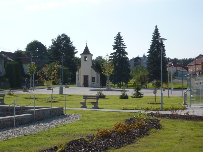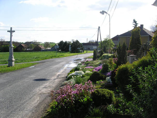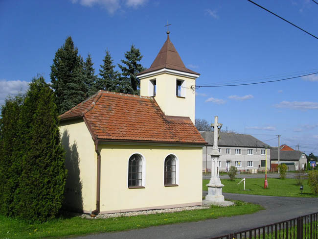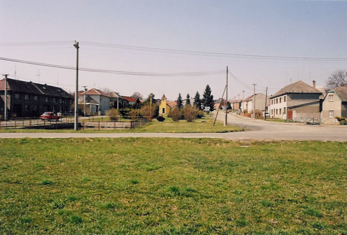 Pohled na náves z dolní části - uprostřed kaple Nanebevzetí Pany Marie