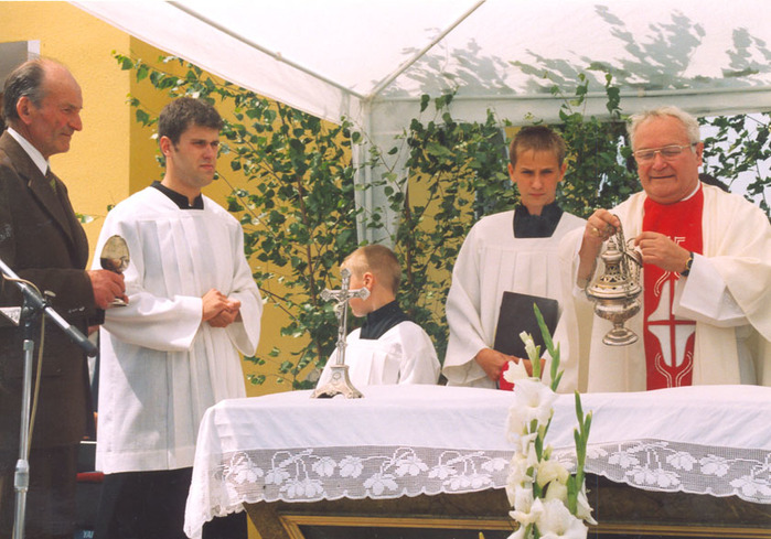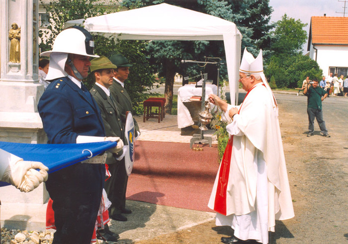 Mons.Josef Hrdlička-olomoucký biskup při žehnání obecním symbolům
