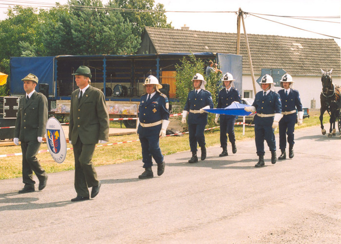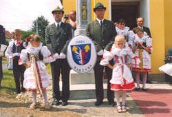 Svěcení znaku a praporu-myslivci Muzikant Petr(vlevo) a Konečný Vlastimil