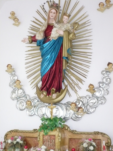 Socha P.Marie Svatohostýnské s Ježíškem a oltářem